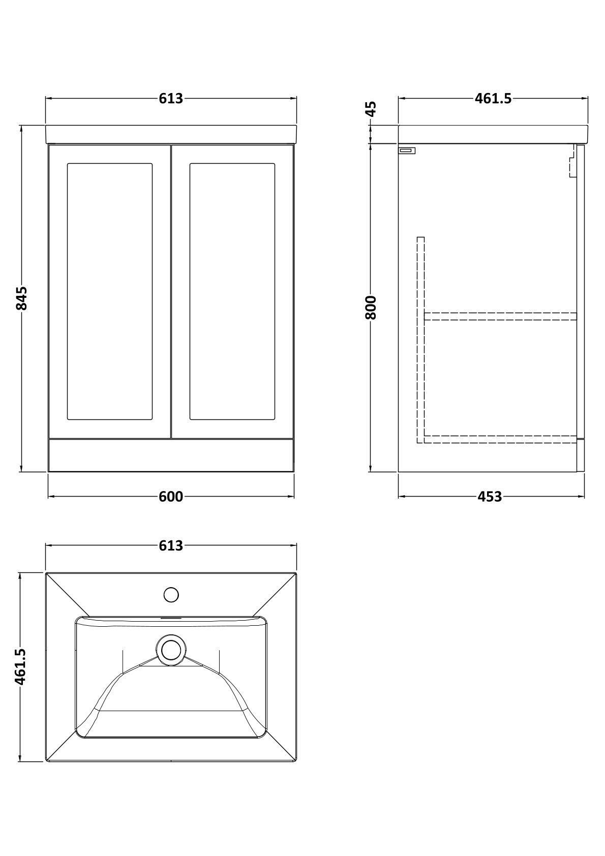 Larck 600mm 2-Door Floor Standing Unit with Contemporary Fireclay Basin - 1 Tap Hole