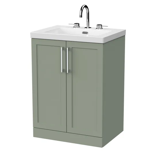 nuie Lux Larck 600mm 2-Door Floor Standing Unit with Contemporary Fireclay Basin - 3 Tap Holes - Fern Green