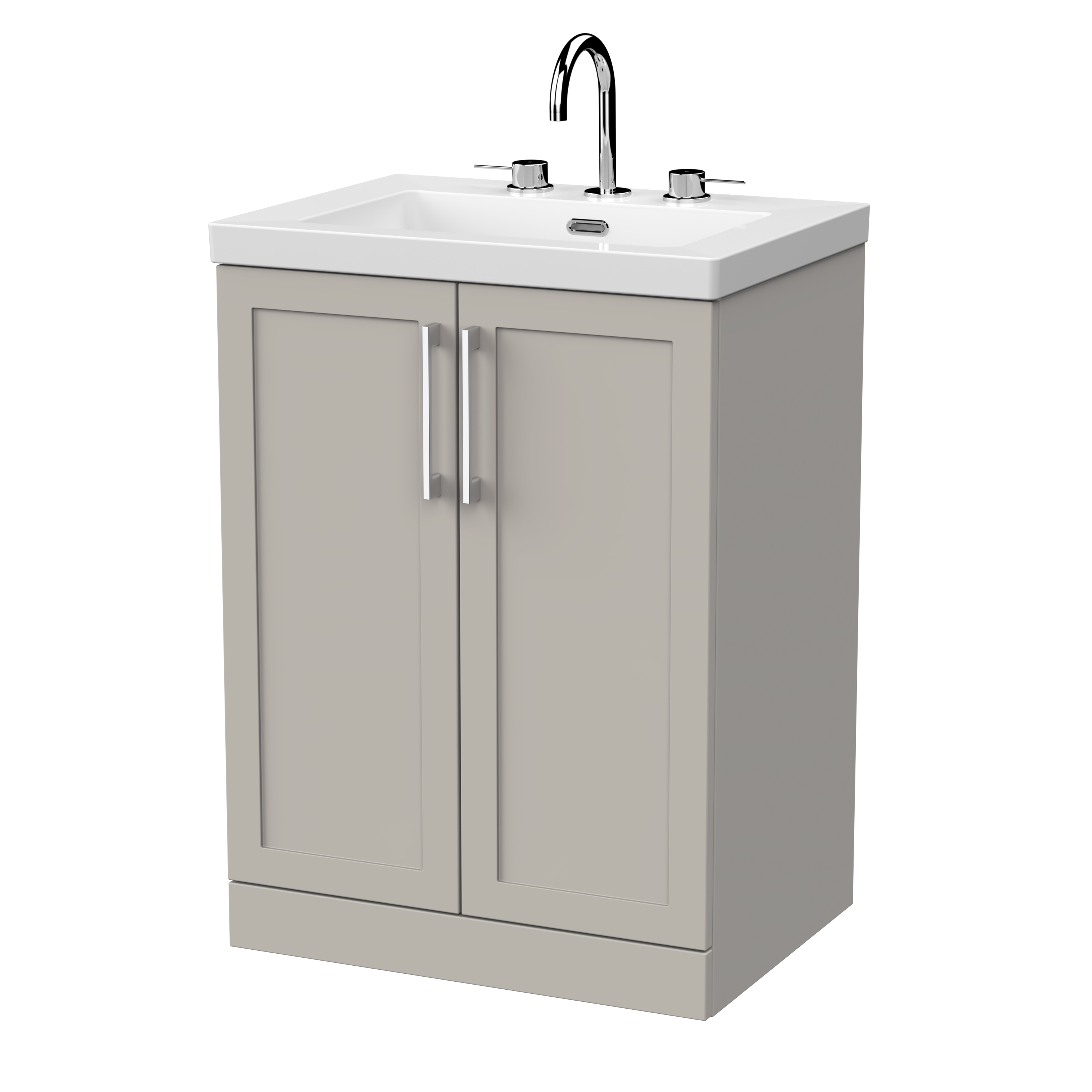 nuie Lux Larck 600mm 2-Door Floor Standing Unit with Contemporary Fireclay Basin - 3 Tap Holes - Pebble Grey