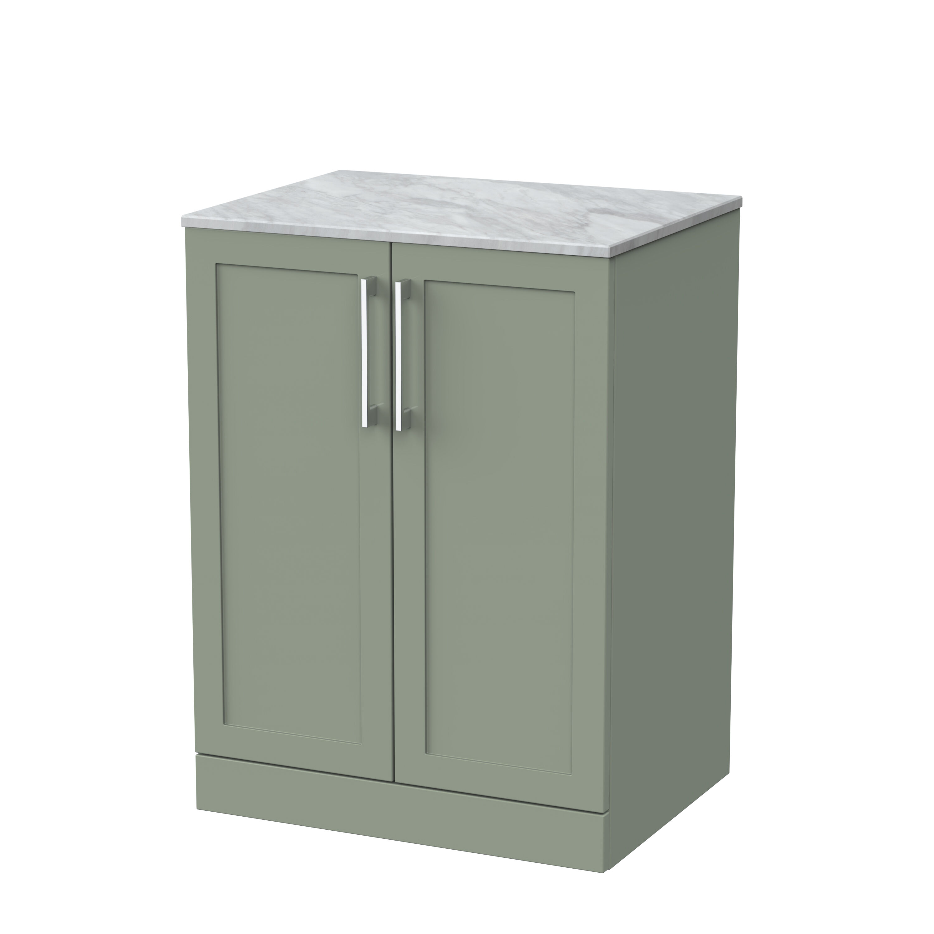 nuie Lux Larck 600mm 2-Door Floor Standing Unit with Grey Marble Top - Fern Green