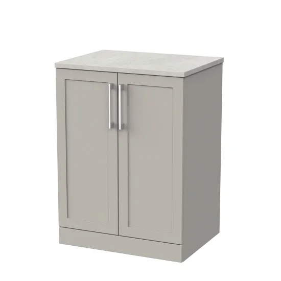 nuie Lux Larck 600mm 2-Door Floor Standing Unit with Laminate Worktop - Pebble Grey