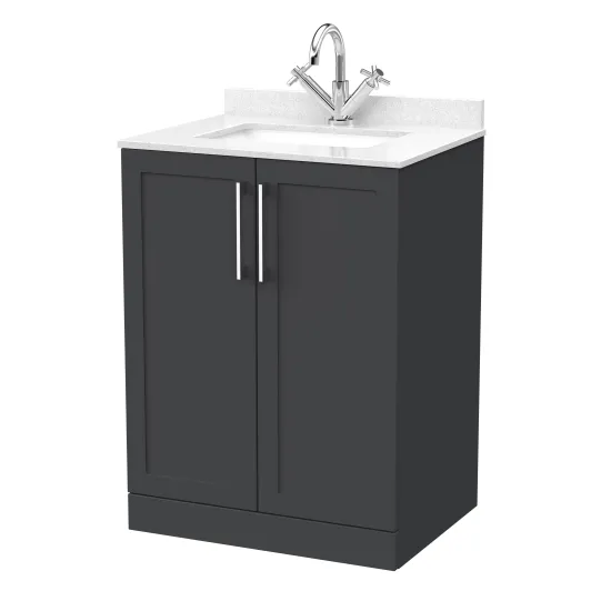 nuie Lux Larck 600mm 2-Door Floor Standing Unit with Single Bowl Marble Top 1 Tap Hole in White - Soft Black