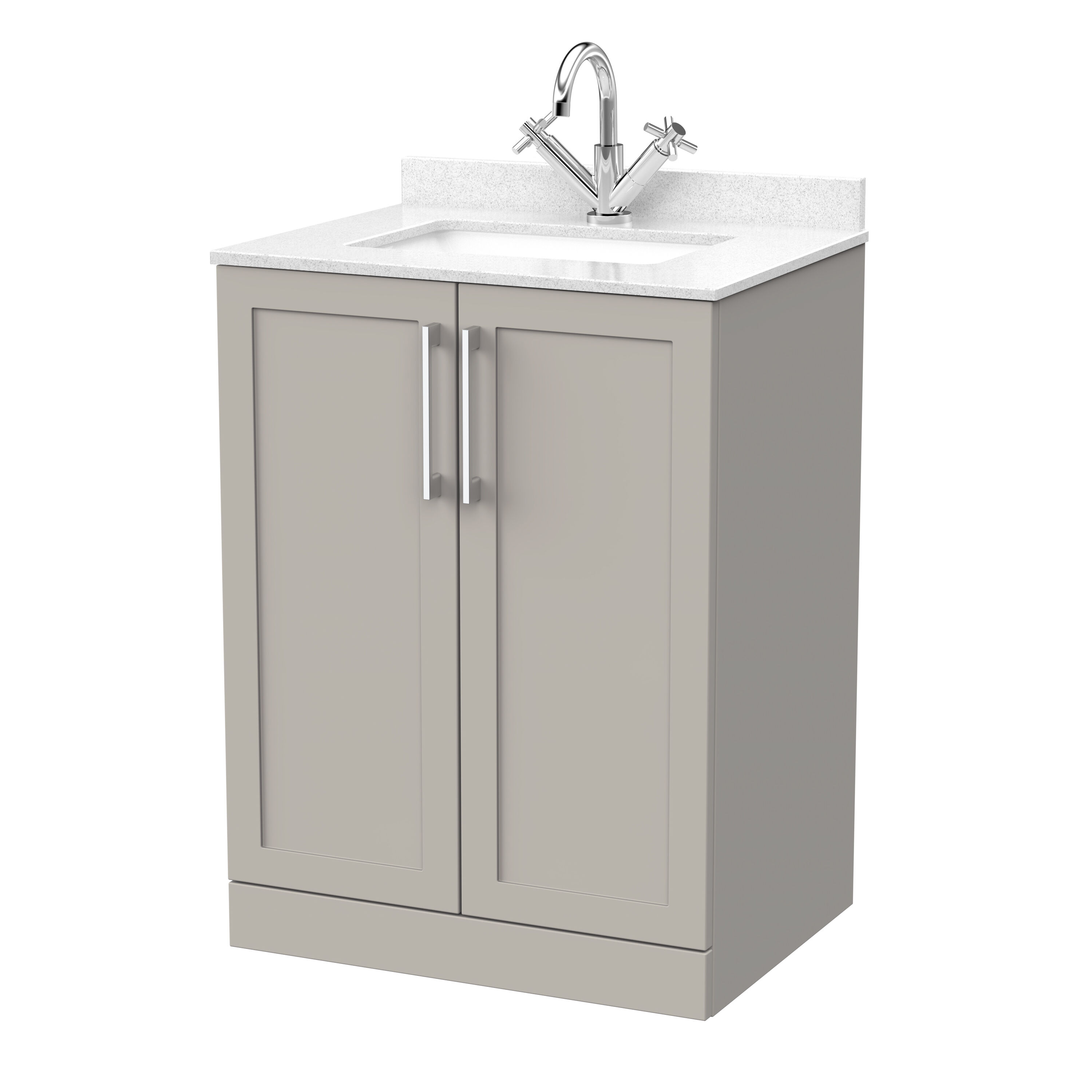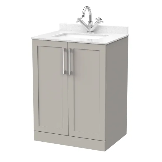 nuie Lux Larck 600mm 2-Door Floor Standing Unit with Single Bowl Marble Top 1 Tap Hole in White - Pebble Grey
