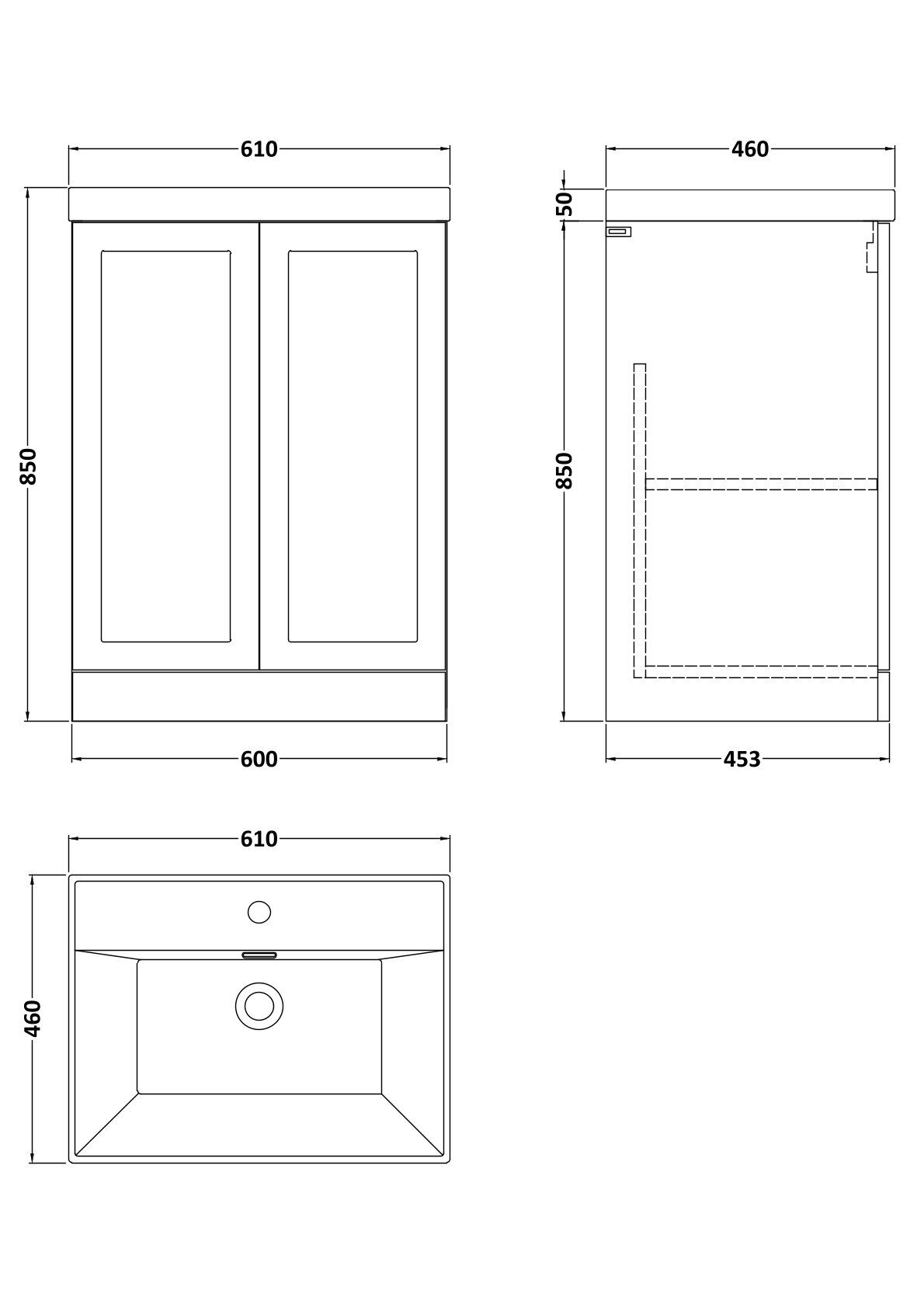 Larck 600mm 2-Door Floor Standing Unit with Thin-Edge Basin - 1 Tap Hole