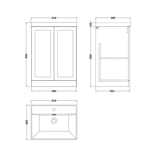 Larck 600mm 2-Door Floor Standing Unit with Thin-Edge Basin - 1 Tap Hole