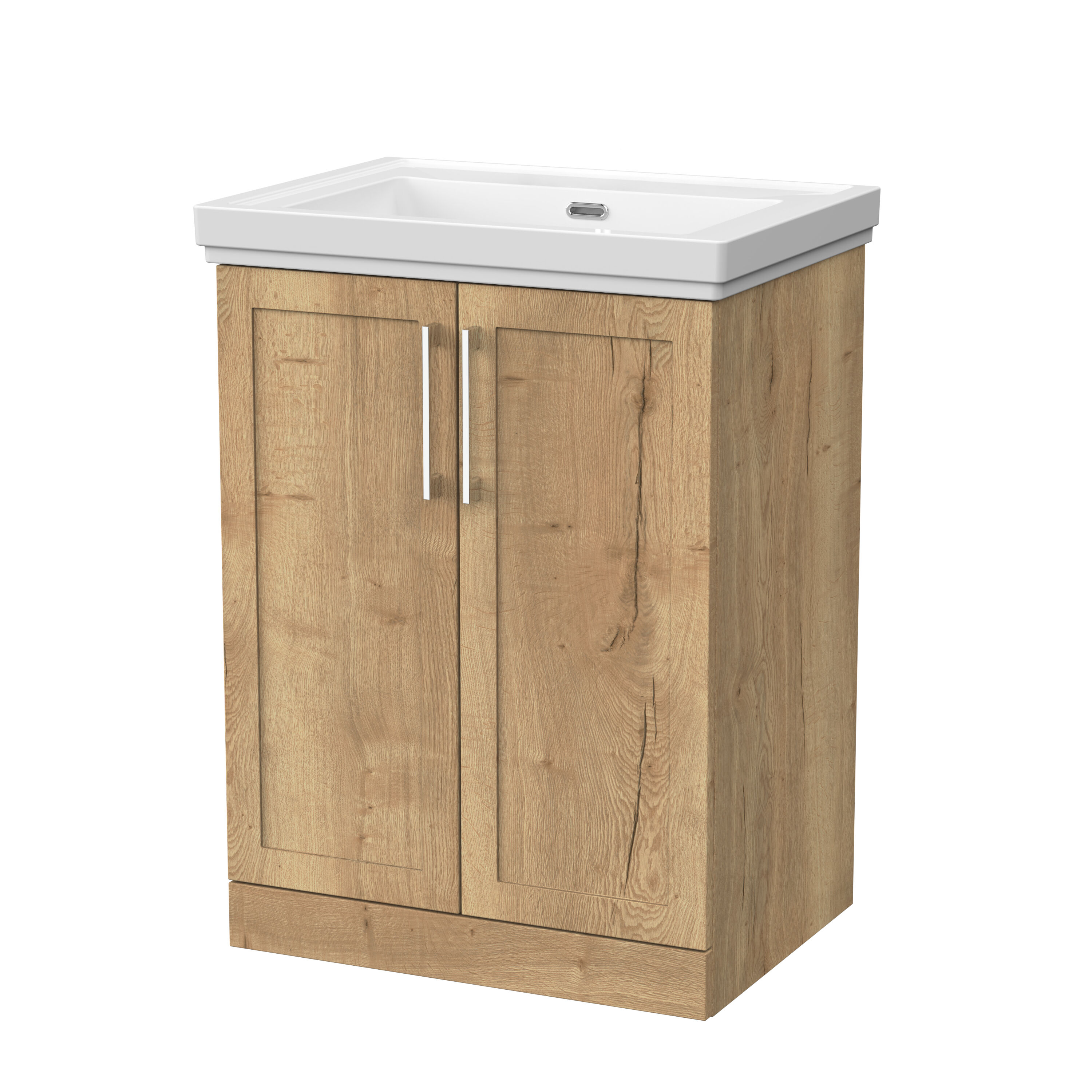 Larck 600mm 2-Door Floor Standing Unit with Traditional Fireclay Basin - 0 Tap Holes
