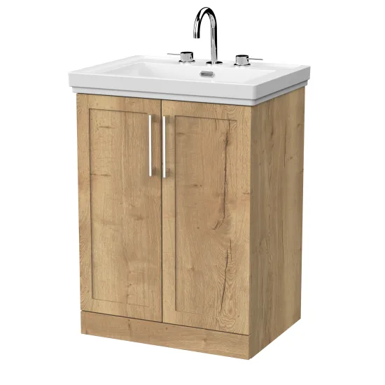 Larck 600mm 2-Door Floor Standing Unit with Traditional Fireclay Basin - 3 Tap Holes