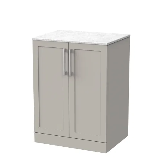 nuie Lux Larck 600mm 2-Door Floor Standing Unit with White Marble Top - Pebble Grey