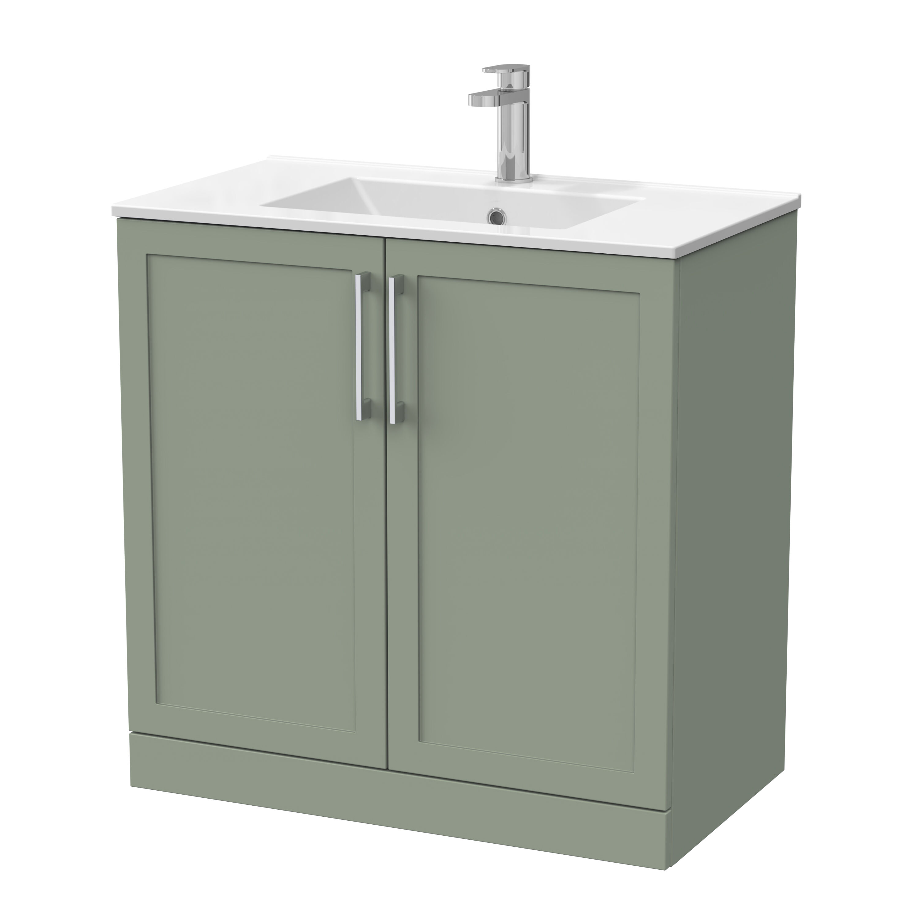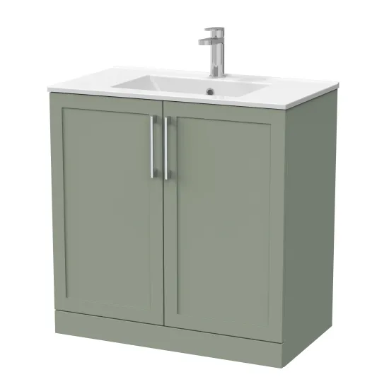 nuie Lux Larck 800mm 2-Door Floor Standing Unit with 1 Tap Hole Minimalist Basin Top - Fern Green