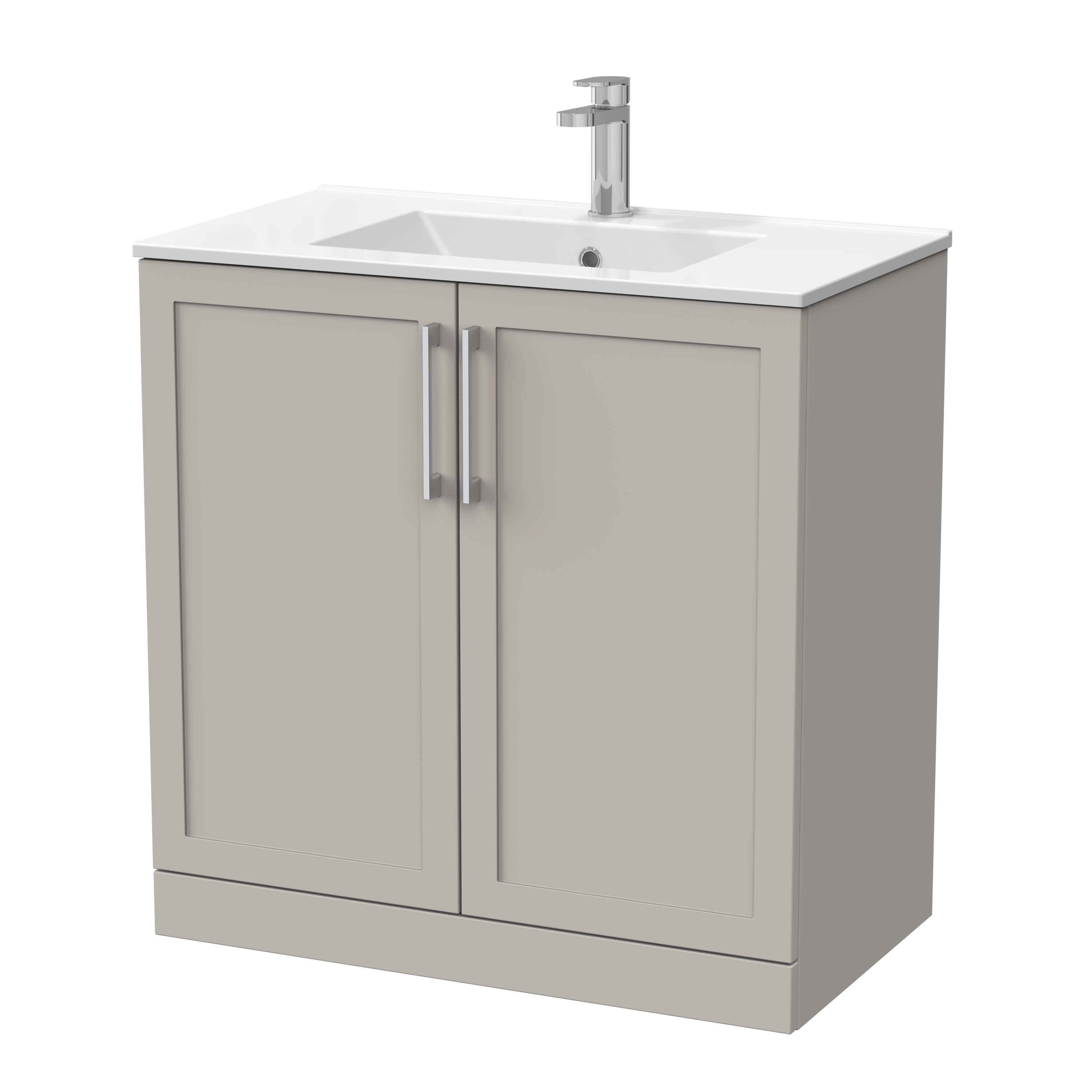 nuie Lux Larck 800mm 2-Door Floor Standing Unit with 1 Tap Hole Minimalist Basin Top - Pebble Grey
