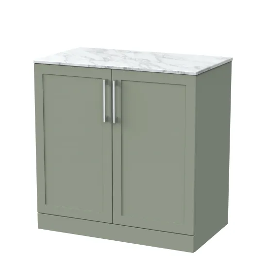 nuie Lux Larck 800mm 2-Door Floor Standing Unit with Carrera Marble Top - Fern Green