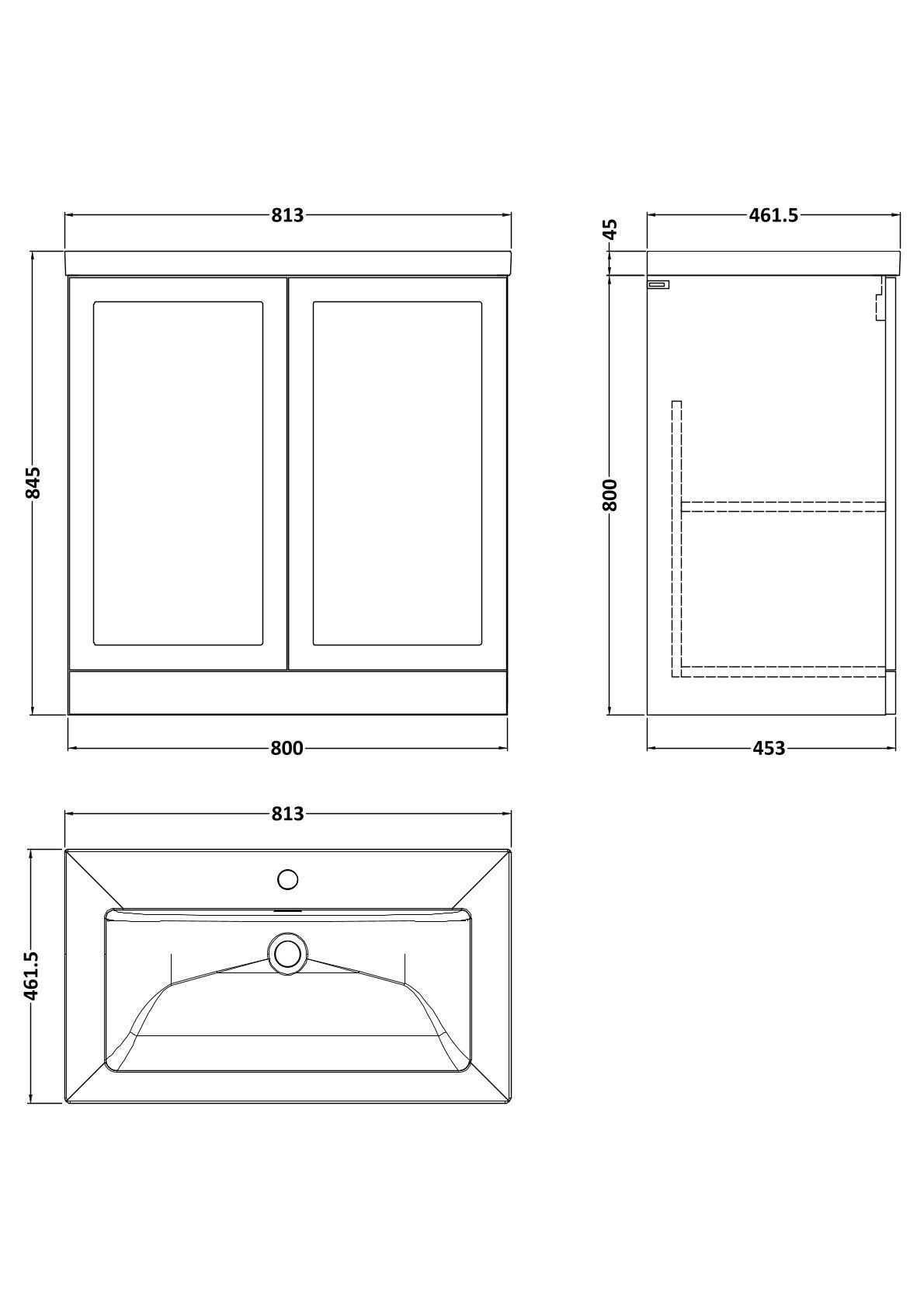 Larck 800mm 2-Door Floor Standing Unit with Contemporary Fireclay Basin - 1 Tap Hole