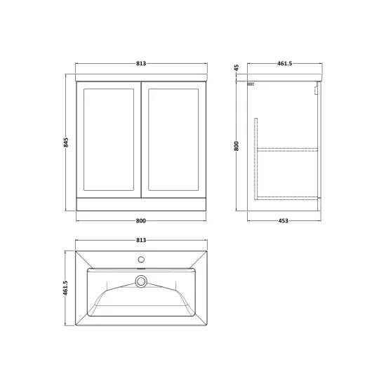 Larck 800mm 2-Door Floor Standing Unit with Contemporary Fireclay Basin - 1 Tap Hole