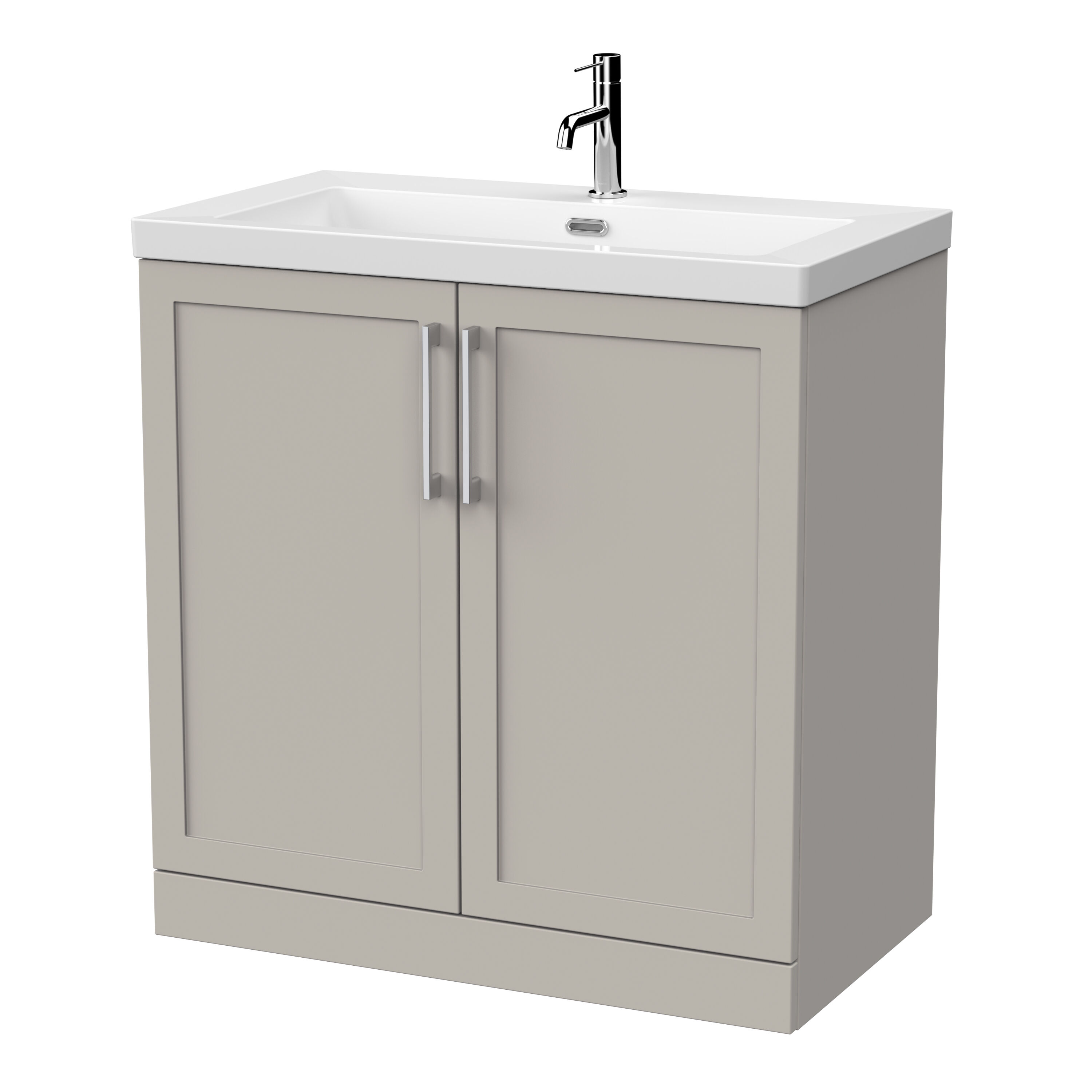 nuie Lux Larck 800mm 2-Door Floor Standing Unit with Contemporary Fireclay Basin - 1 Tap Hole - Pebble Grey