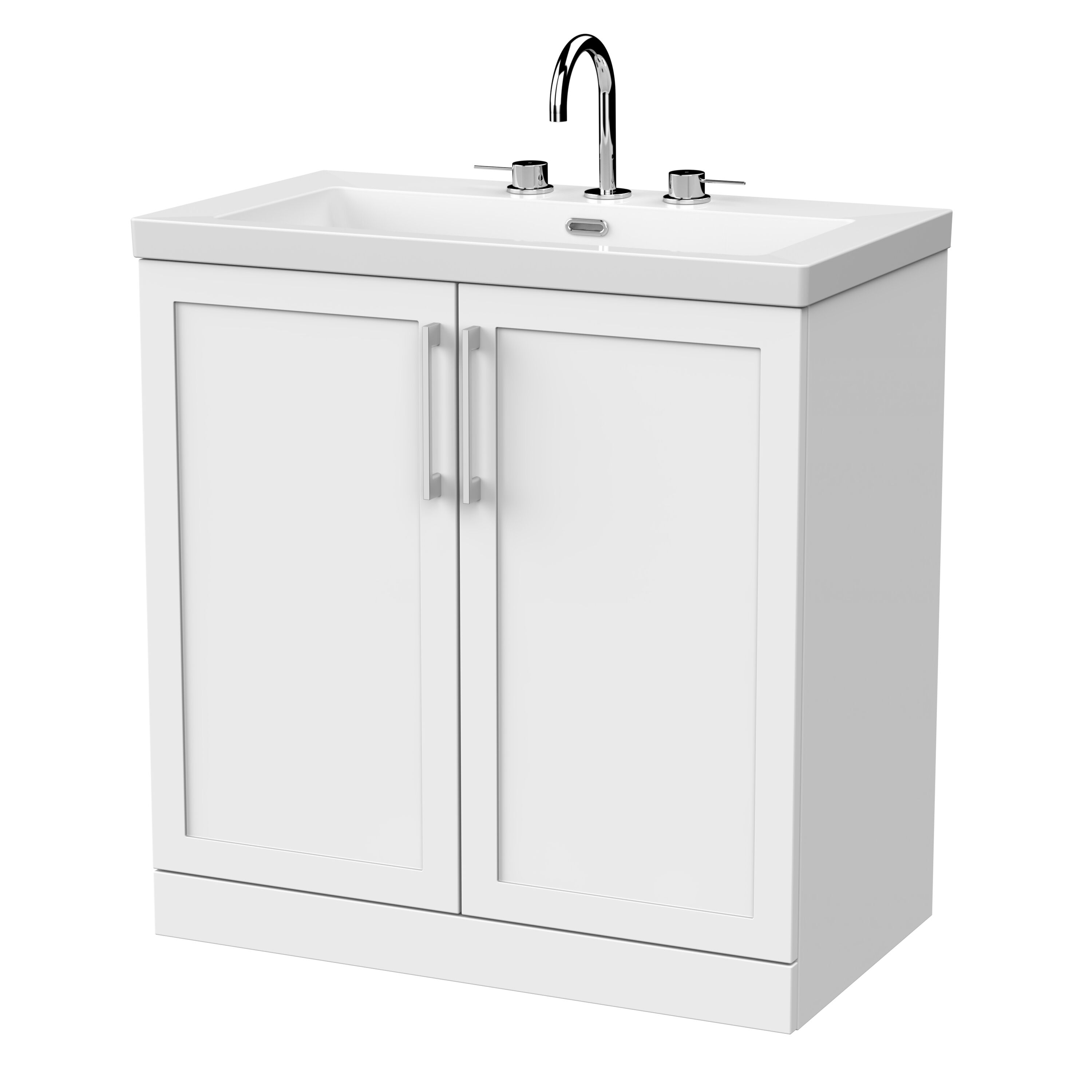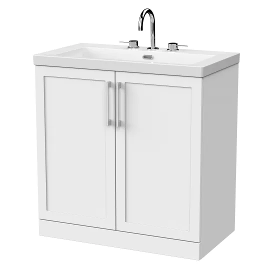 nuie Lux Larck 800mm 2-Door Floor Standing Unit with Contemporary Fireclay Basin - 3 Tap Holes - Matt White