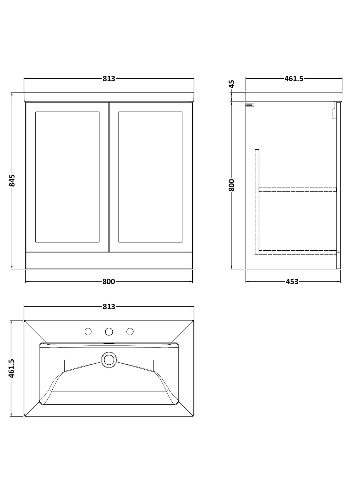 Larck 800mm 2-Door Floor Standing Unit with Contemporary Fireclay Basin - 3 Tap Holes