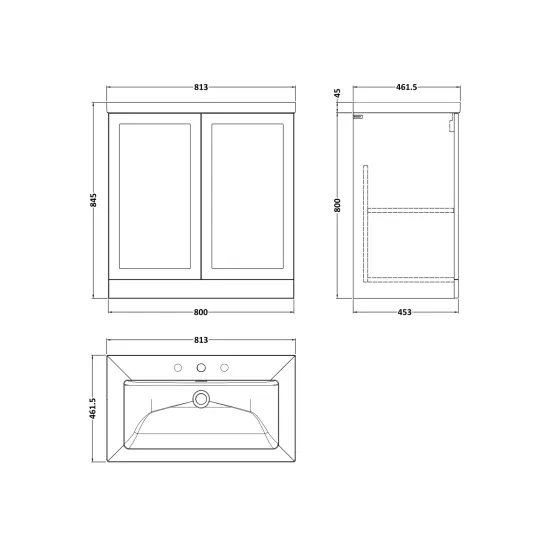 Larck 800mm 2-Door Floor Standing Unit with Contemporary Fireclay Basin - 3 Tap Holes