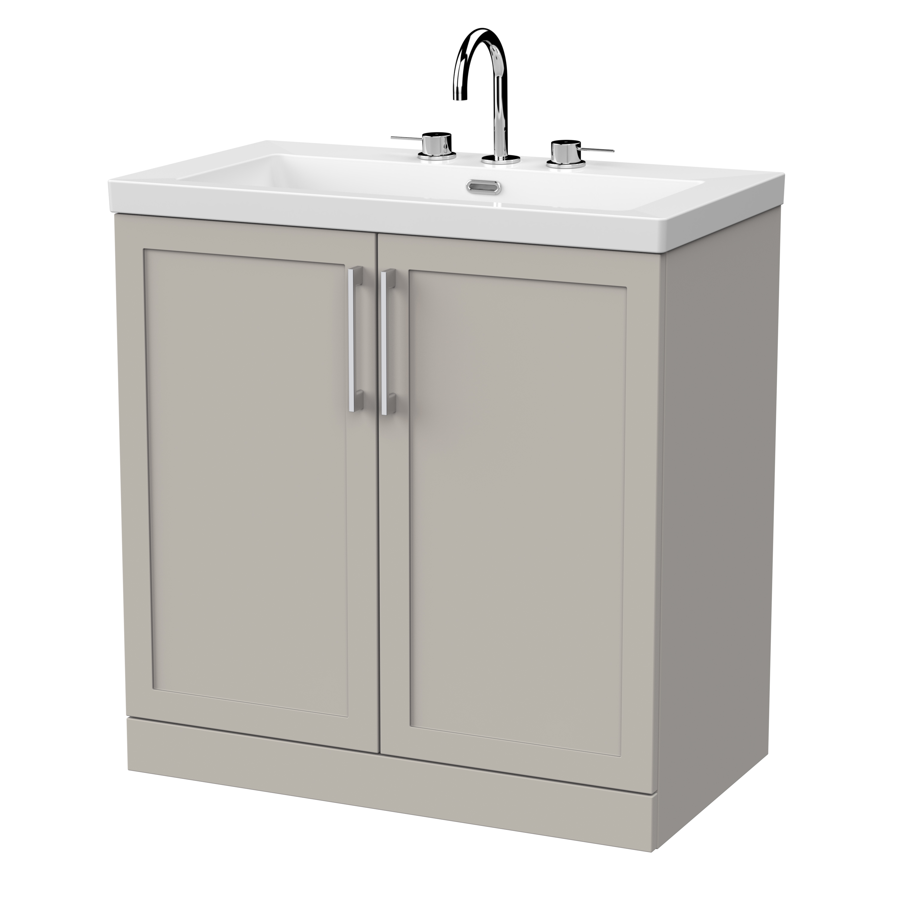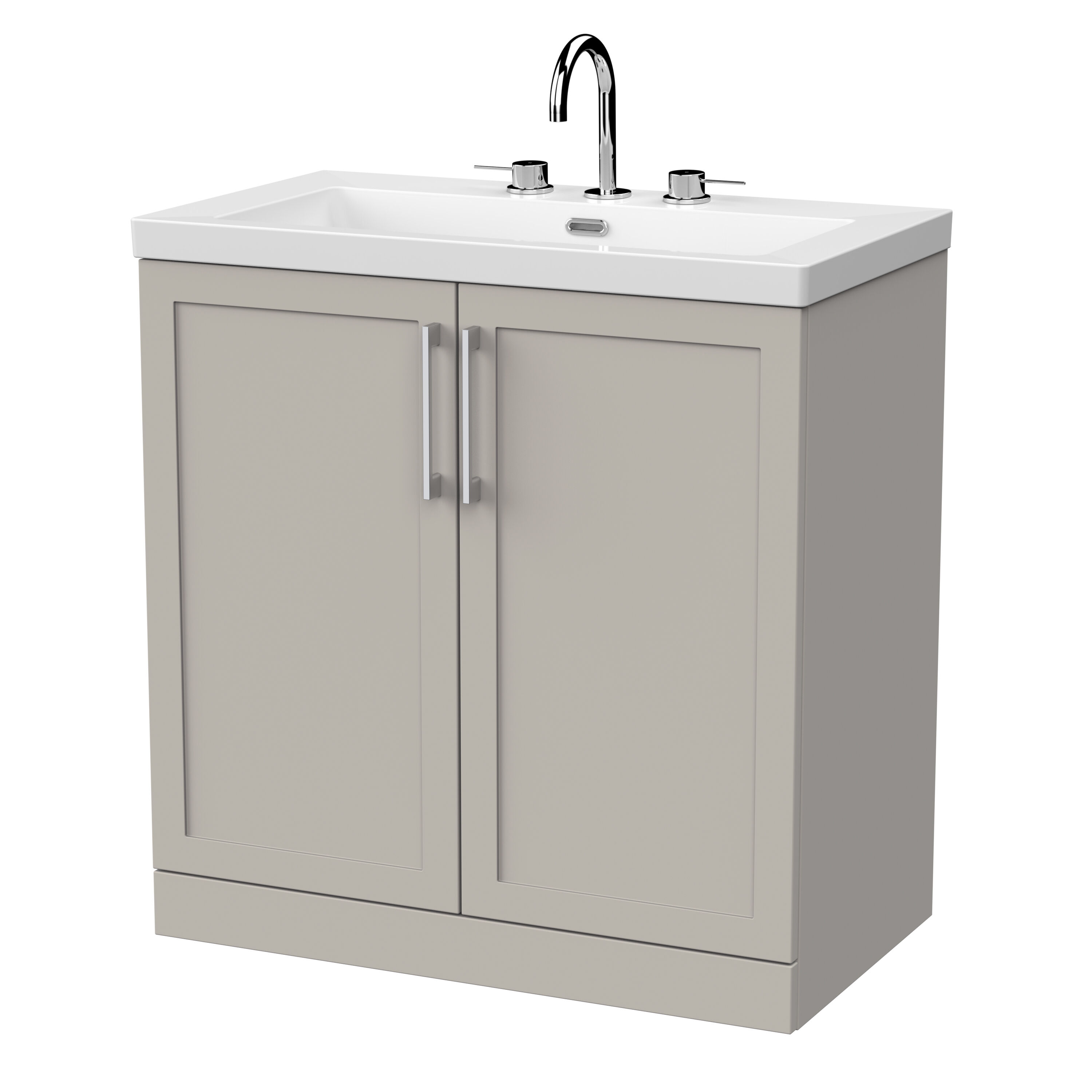 nuie Lux Larck 800mm 2-Door Floor Standing Unit with Contemporary Fireclay Basin - 3 Tap Holes - Pebble Grey
