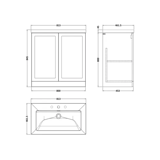 Larck 800mm 2-Door Floor Standing Unit with Contemporary Fireclay Basin - 3 Tap Holes