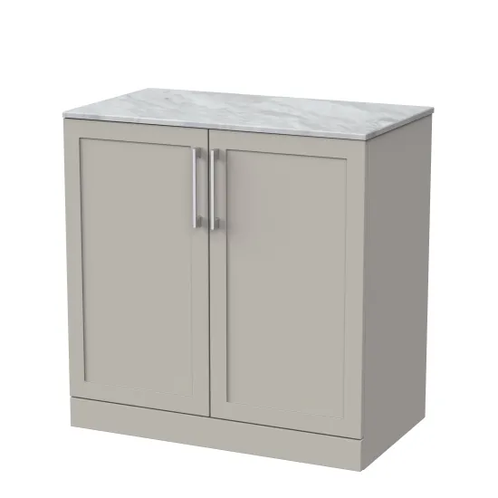 nuie Lux Larck 800mm 2-Door Floor Standing Unit with Grey Marble Top - Pebble Grey