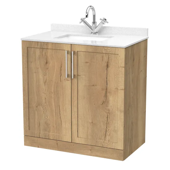 nuie Lux Larck 800mm 2-Door Floor Standing Unit with Single Bowl Marble Top 1 Tap Hole in White - Autumn Oak