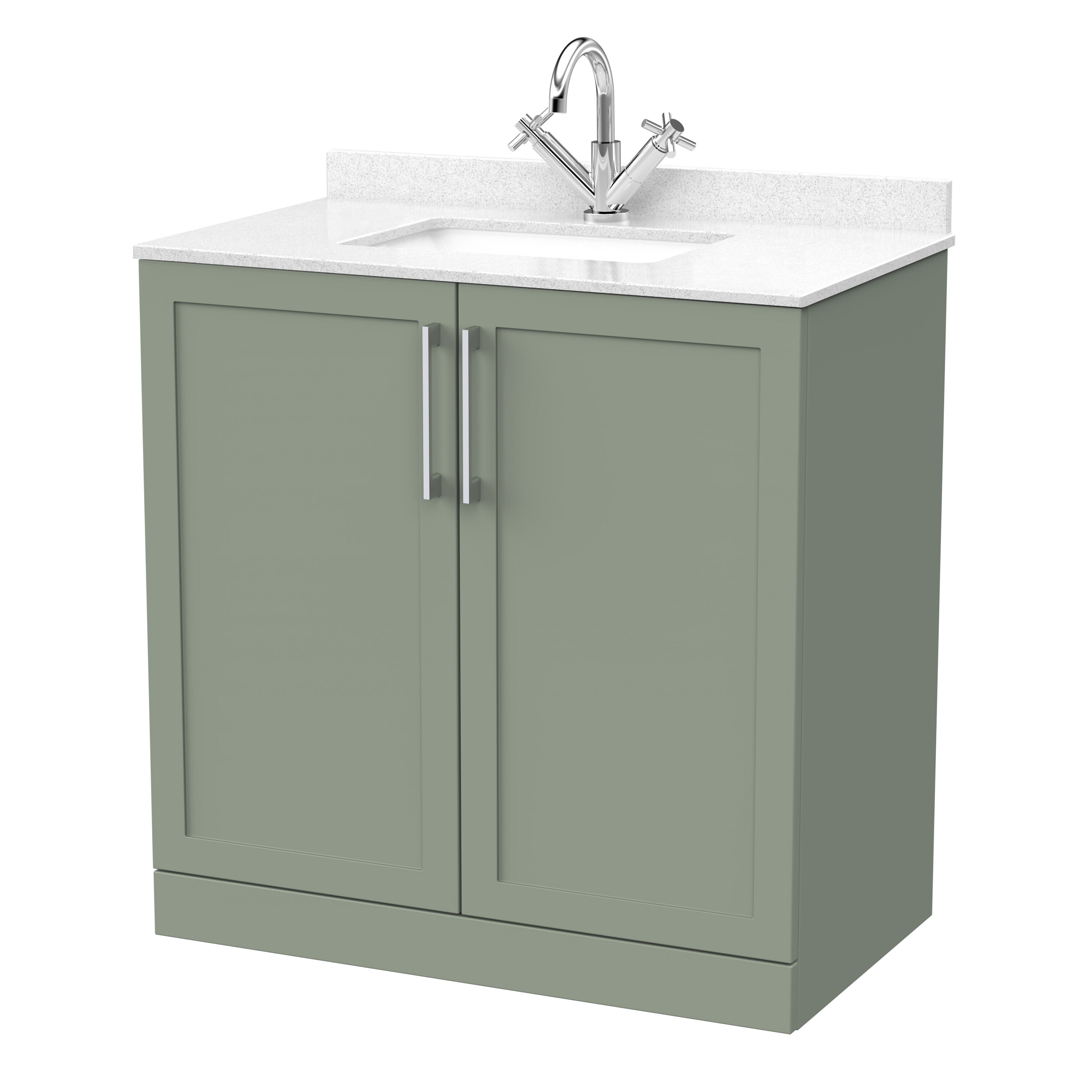 nuie Lux Larck 800mm 2-Door Floor Standing Unit with Single Bowl Marble Top 1 Tap Hole in White - Fern Green