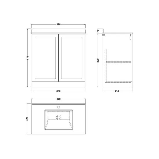Larck 800mm 2-Door Floor Standing Unit with Single Bowl Marble Top 1 Tap Hole in White
