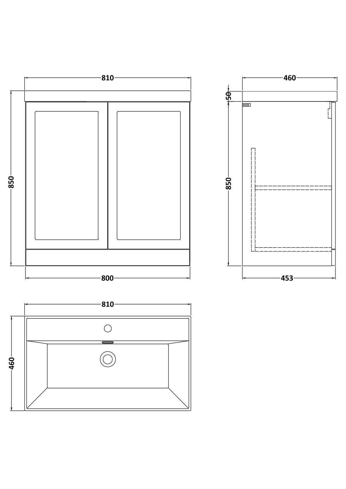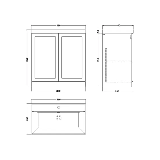 Larck 800mm 2-Door Floor Standing Unit with Thin-Edge Basin - 1 Tap Hole