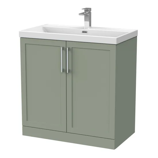 nuie Lux Larck 800mm 2-Door Floor Standing Unit with Thin-Edge Basin - 1 Tap Hole - Fern Green