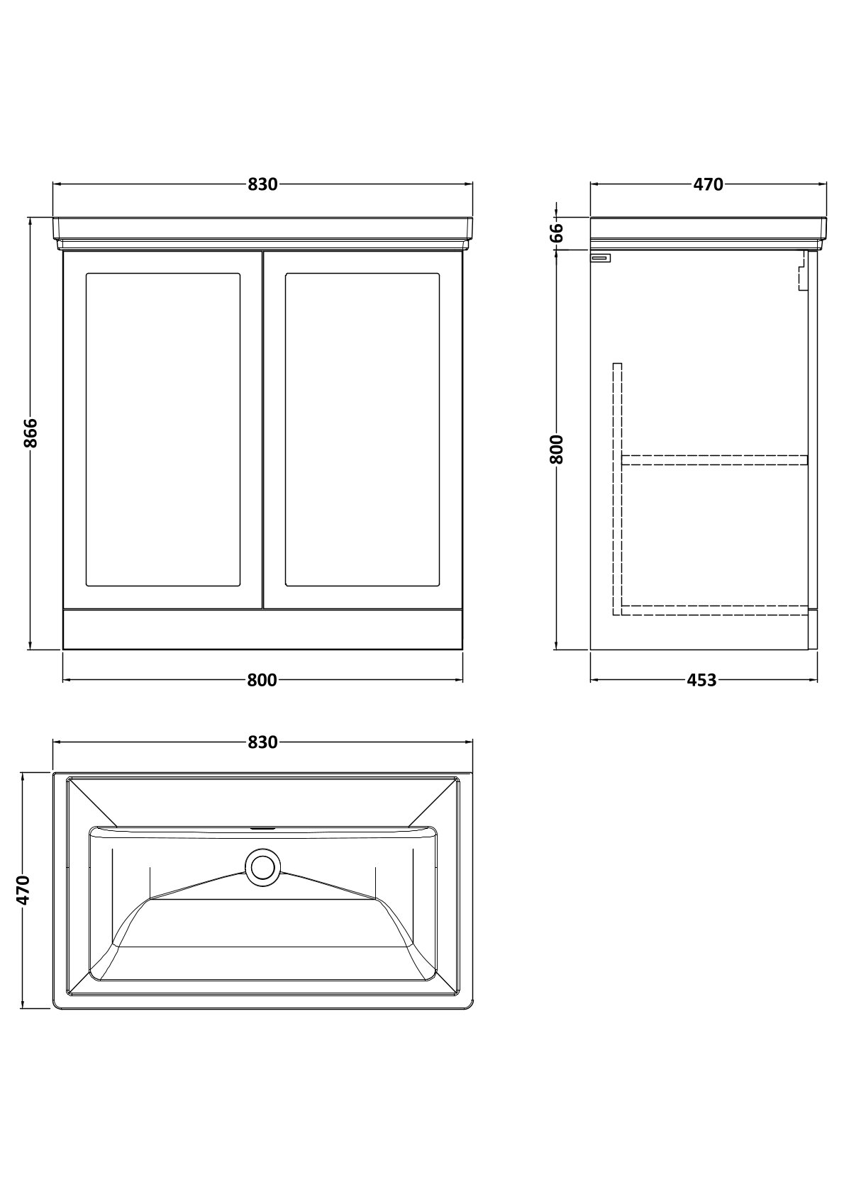 Larck 800mm 2-Door Floor Standing Unit with Traditional Fireclay Basin - 0 Tap Holes