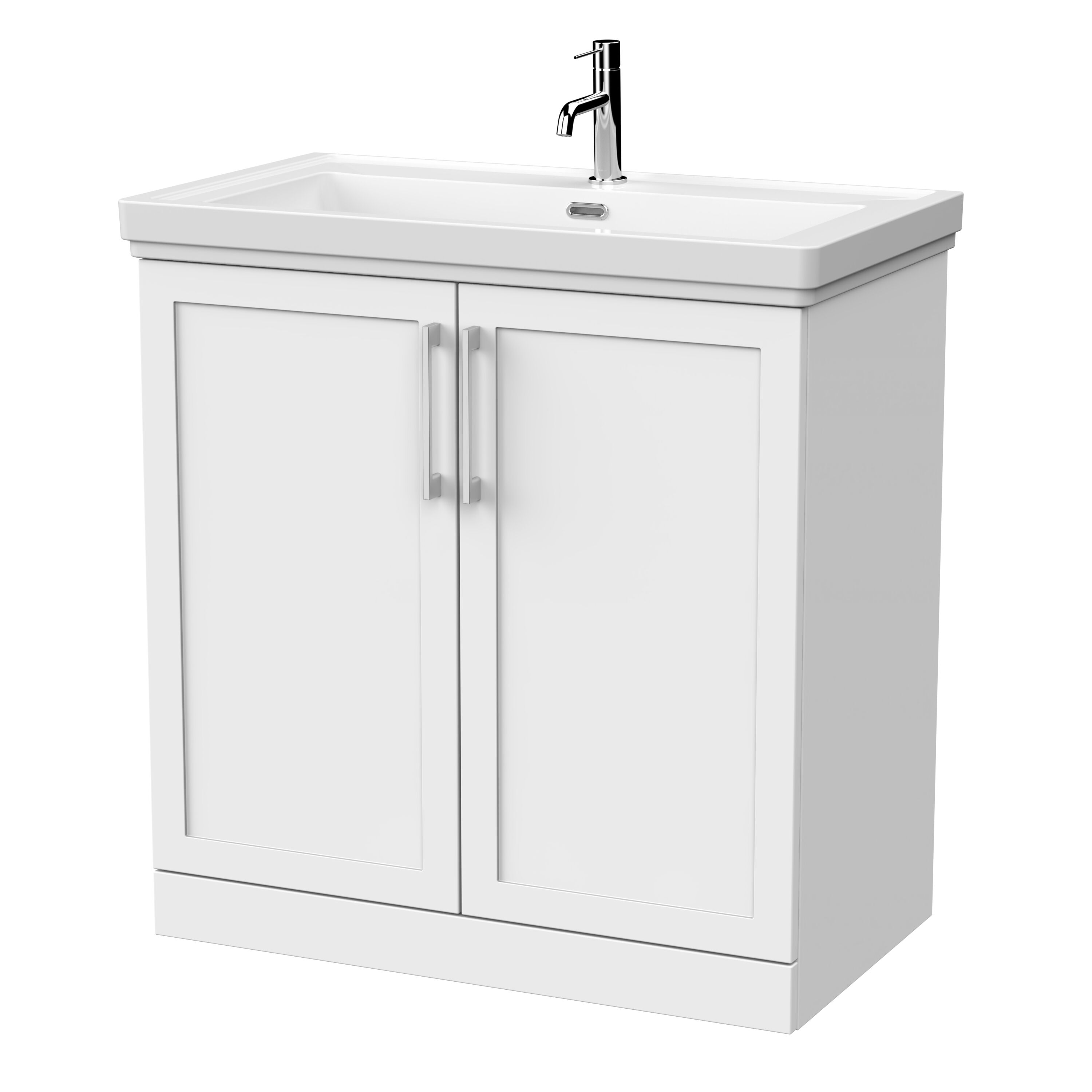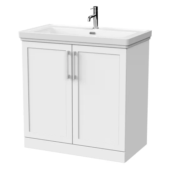 nuie Lux Larck 800mm 2-Door Floor Standing Unit with Traditional Fireclay Basin - 1 Tap Hole - Matt White