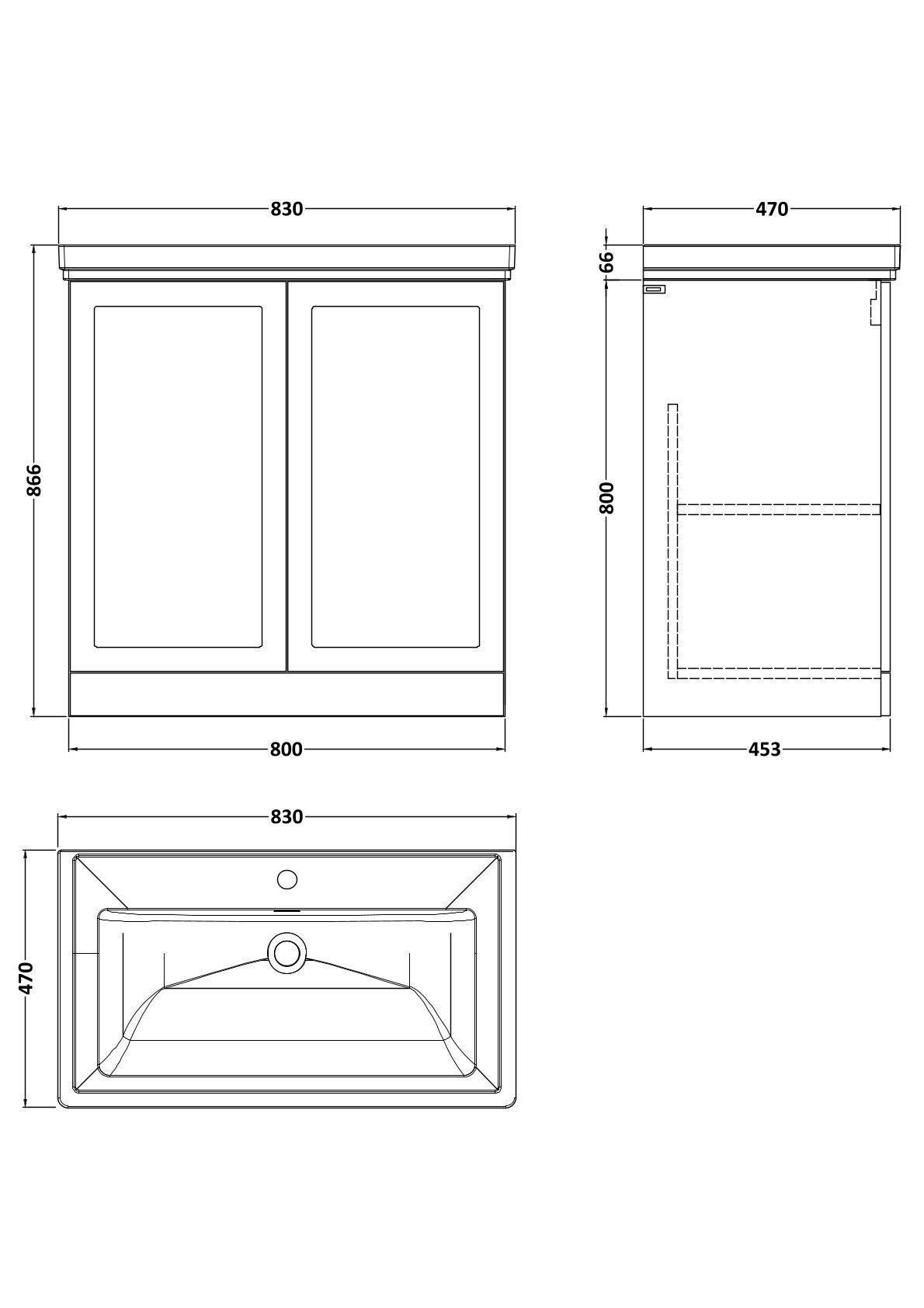 Larck 800mm 2-Door Floor Standing Unit with Traditional Fireclay Basin - 1 Tap Hole