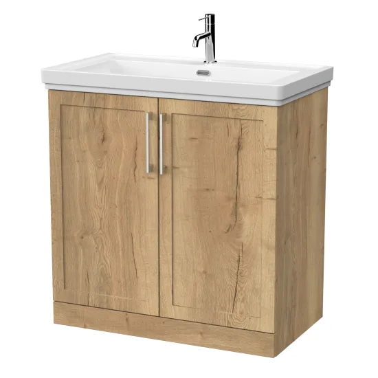 nuie Lux Larck 800mm 2-Door Floor Standing Unit with Traditional Fireclay Basin - 1 Tap Hole - Autumn Oak