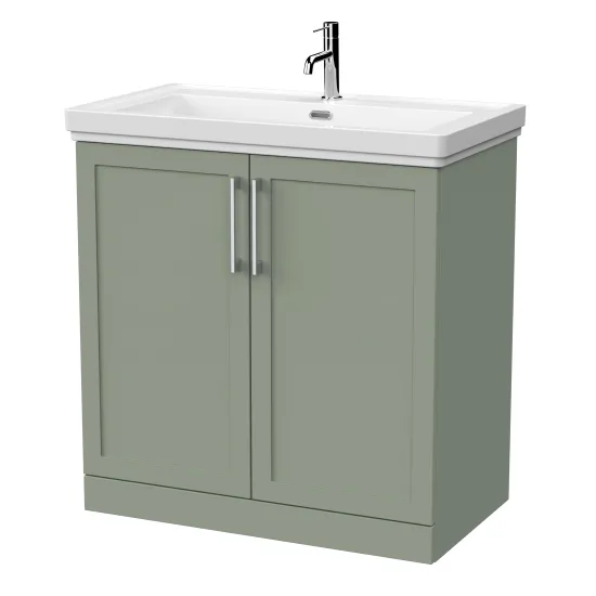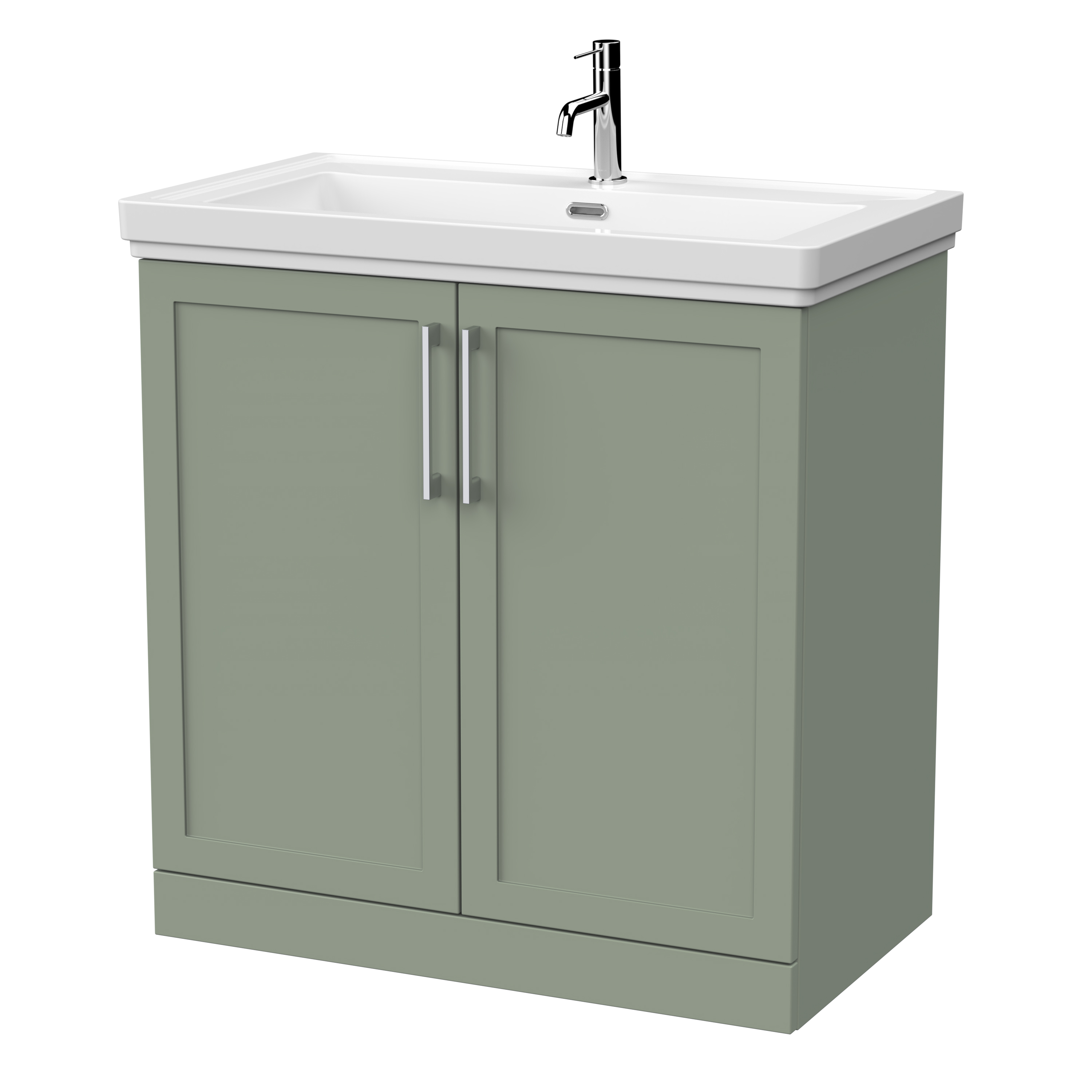 nuie Lux Larck 800mm 2-Door Floor Standing Unit with Traditional Fireclay Basin - 1 Tap Hole - Fern Green