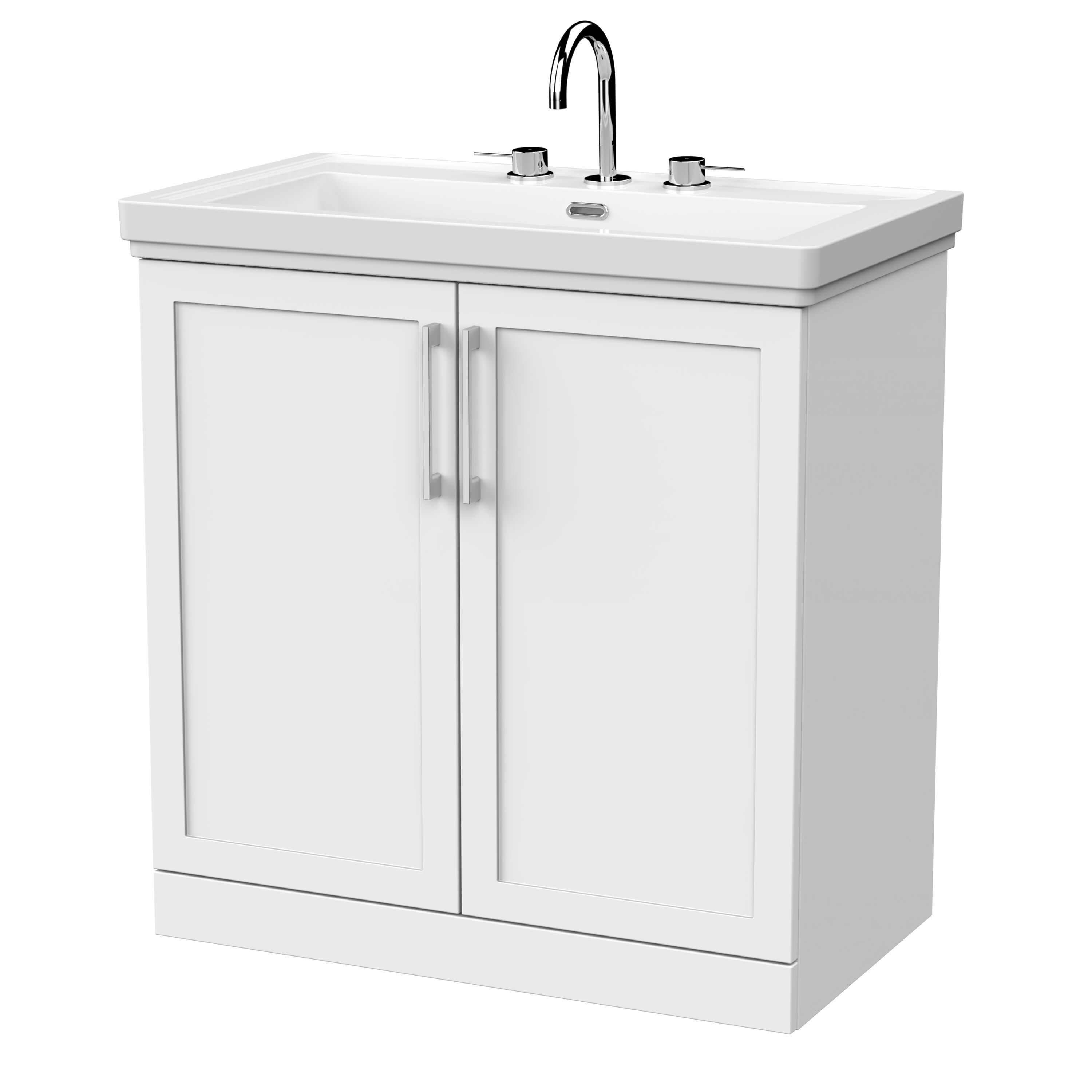 nuie Lux Larck 800mm 2-Door Floor Standing Unit with Traditional Fireclay Basin - 3 Tap Holes - Matt White