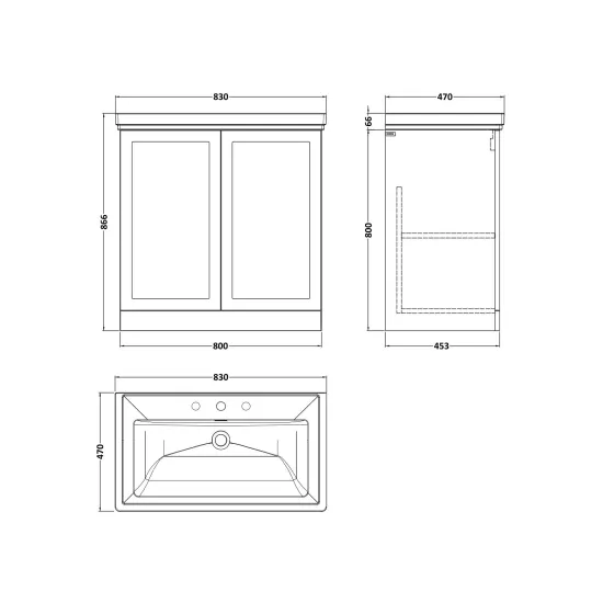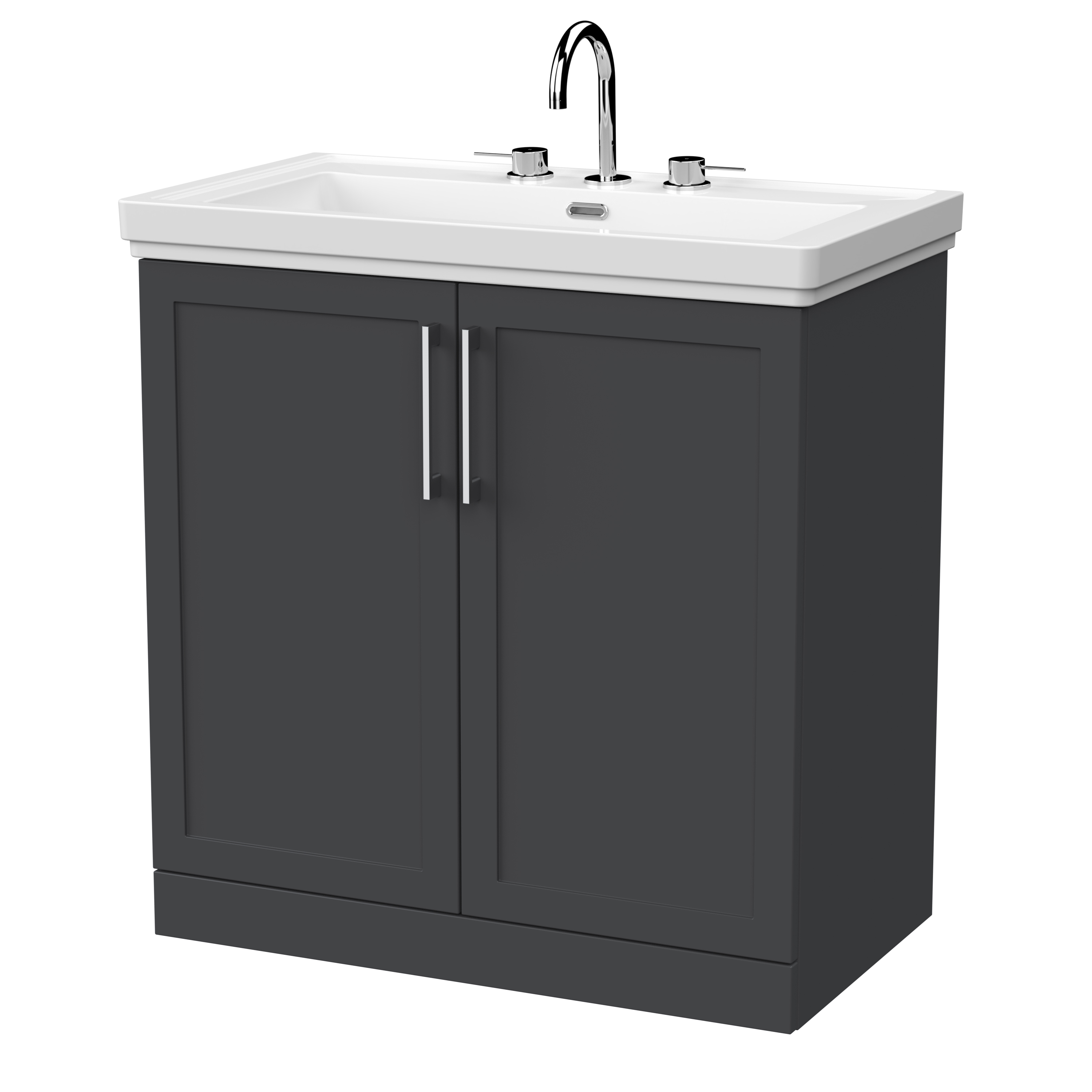 Larck 800mm 2-Door Floor Standing Unit with Traditional Fireclay Basin - 3 Tap Holes