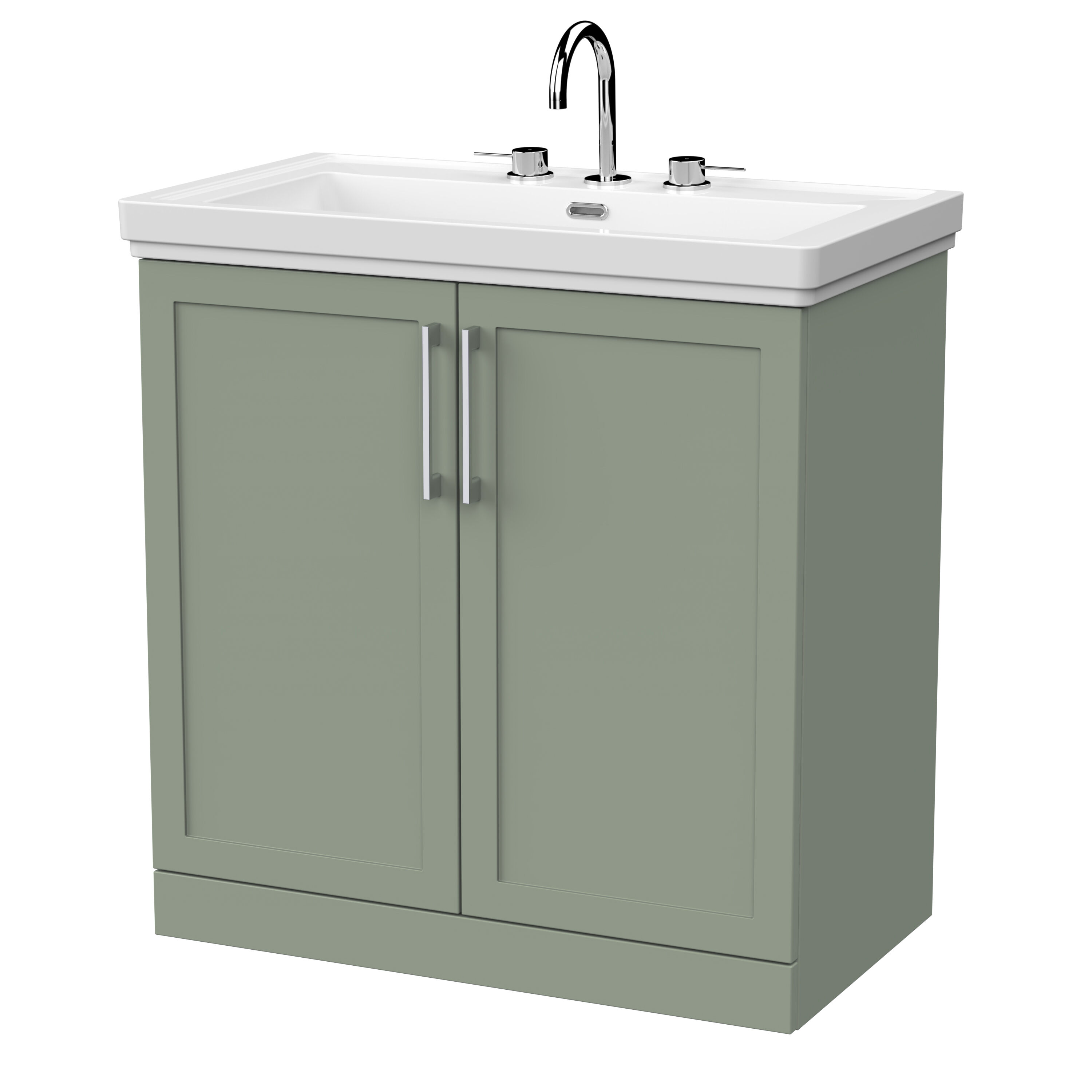 nuie Lux Larck 800mm 2-Door Floor Standing Unit with Traditional Fireclay Basin - 3 Tap Holes - Fern Green
