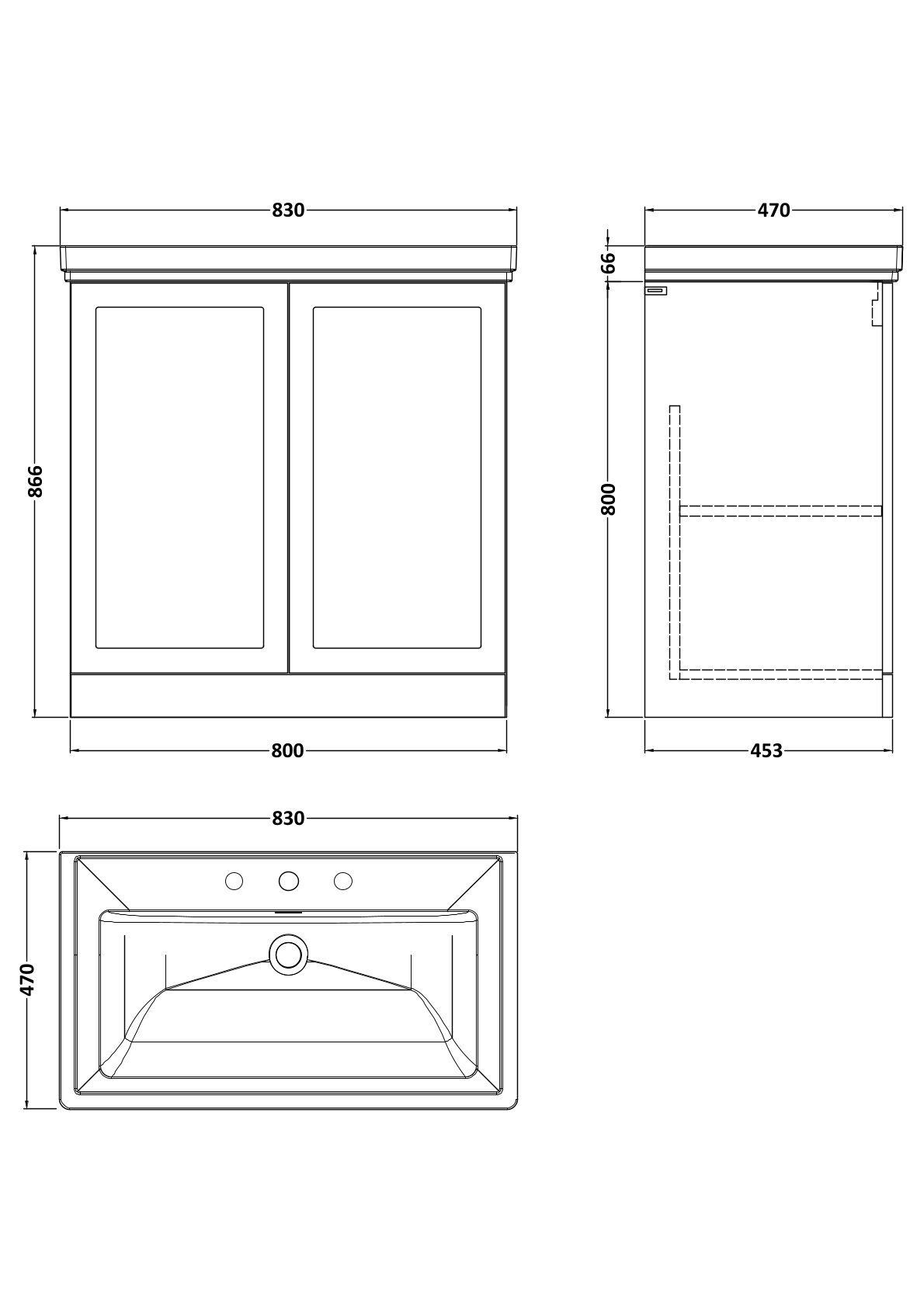 Larck 800mm 2-Door Floor Standing Unit with Traditional Fireclay Basin - 3 Tap Holes