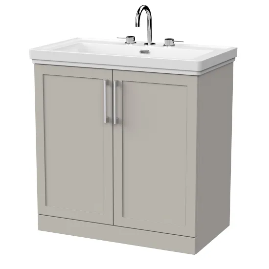 nuie Lux Larck 800mm 2-Door Floor Standing Unit with Traditional Fireclay Basin - 3 Tap Holes - Pebble Grey