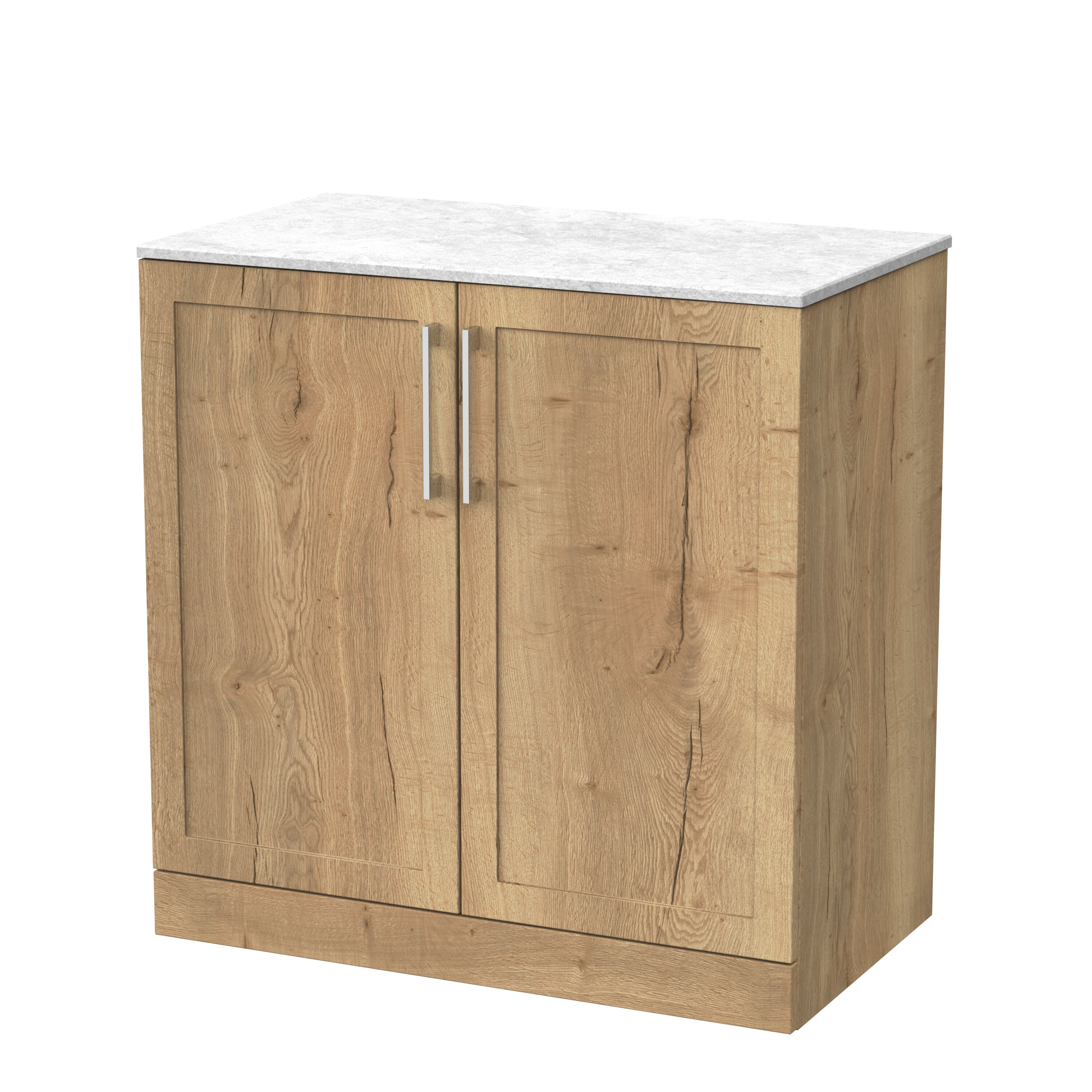nuie Lux Larck 800mm 2-Door Floor Standing Unit with White Marble Top - Autumn Oak