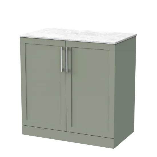 nuie Lux Larck 800mm 2-Door Floor Standing Unit with White Marble Top - Fern Green