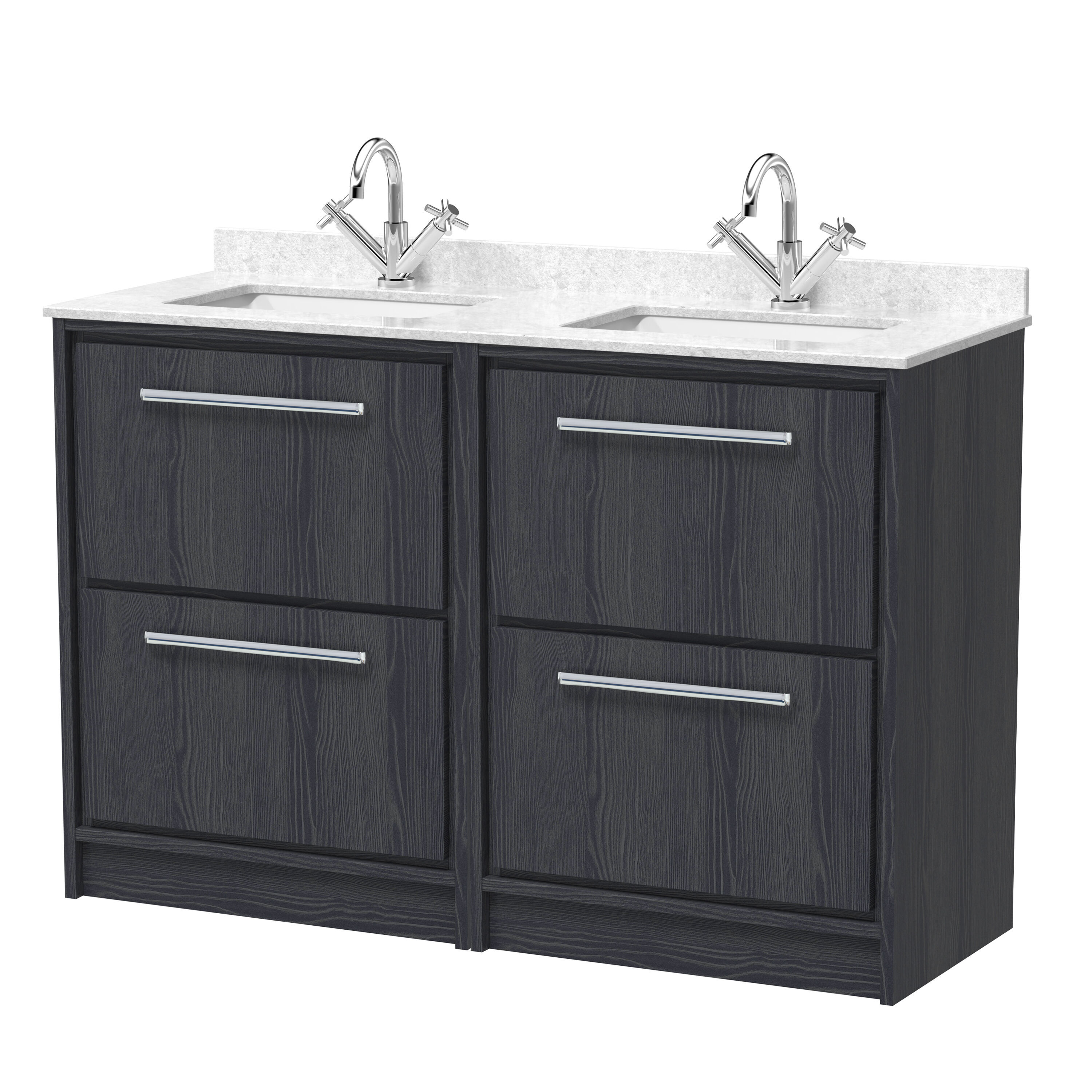 Hudson Reed Lille 1200mm Graphite Grey Woodgrain Floor Standing 4-Drawer Vanity Unit With Marble Worktop