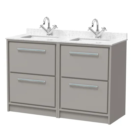 Hudson Reed Lille 1200mm Floor Standing 4-Drawer Vanity with Marble Worktop Basin - Pebble Grey