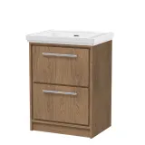 Hudson Reed Lille 600mm Floor Standing 2-Drawer Vanity with Basin - 0 Tap Hole - Bleached Oak