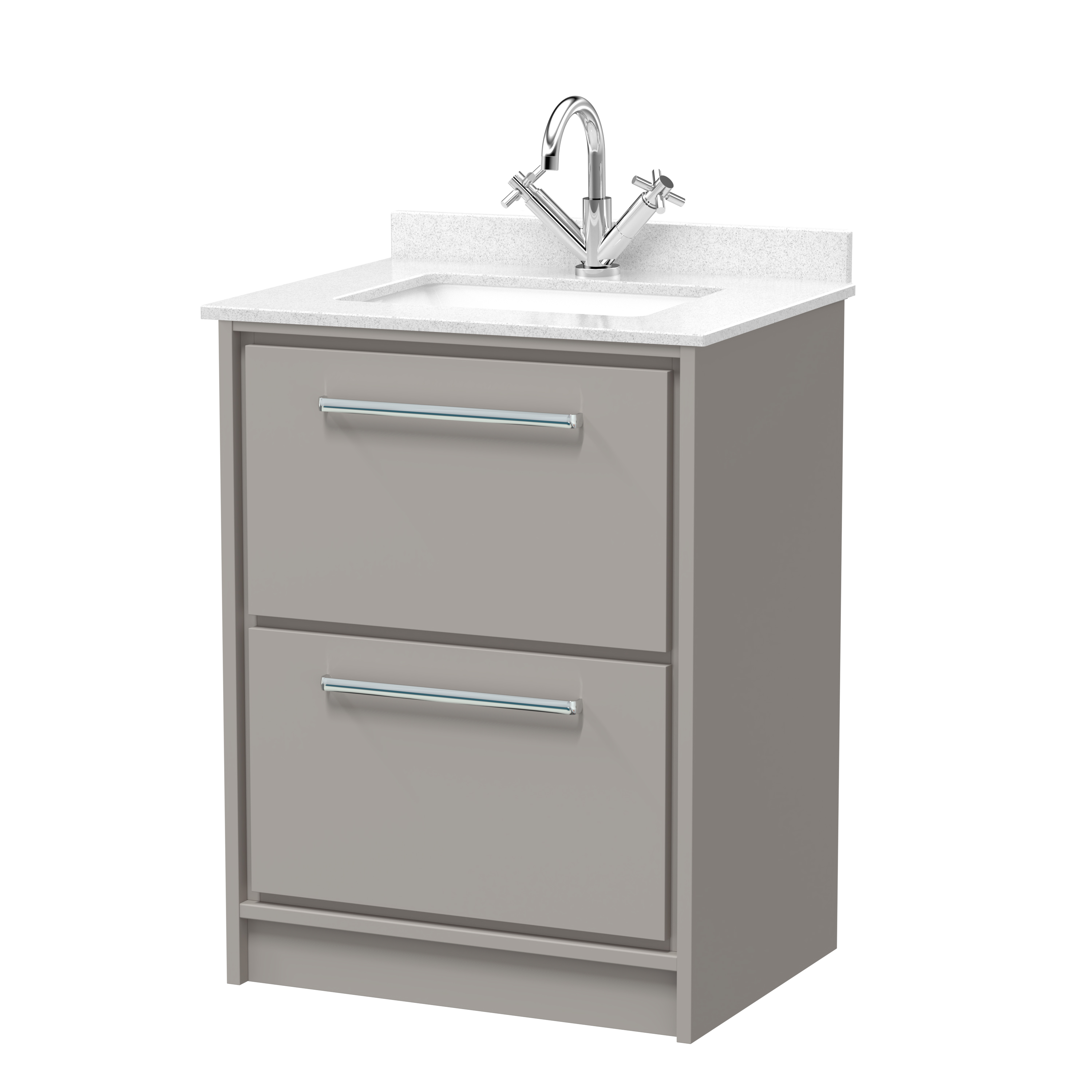 Hudson Reed Lille 600mm Floor Standing 2-Drawer Vanity with Marble Worktop Basin - Pebble Grey