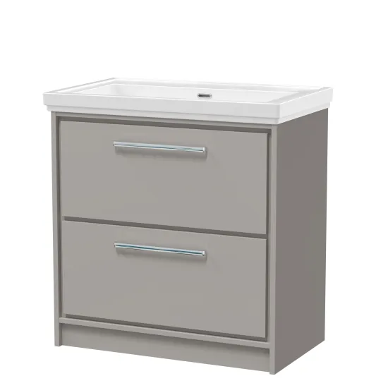 Hudson Reed Lille 800mm Floor Standing 2-Drawer Vanity with Basin - 0 Tap Hole - Pebble Grey