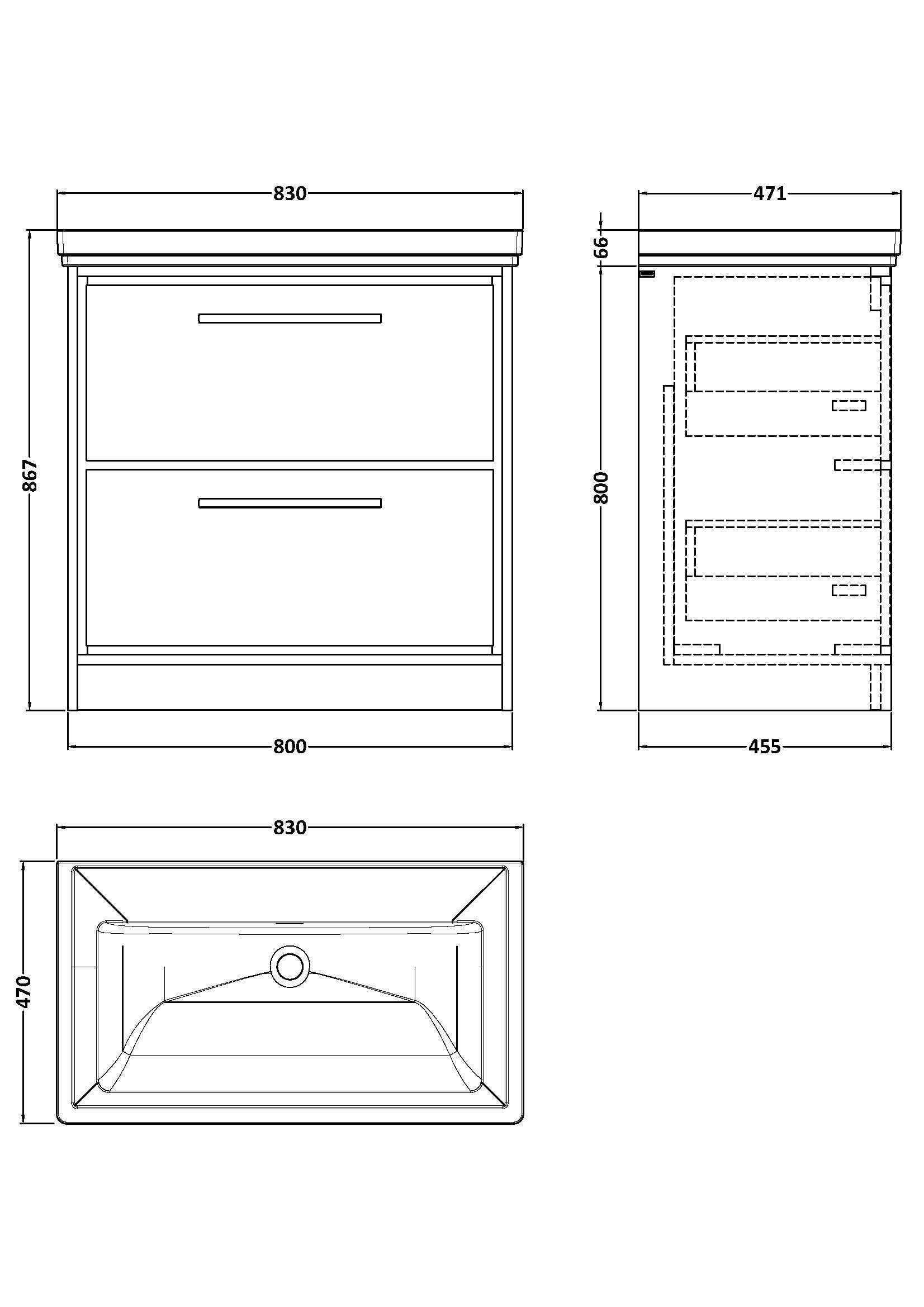 Lille 800mm Floor Standing 2-Drawer Vanity with Basin - 3 Tap Hole