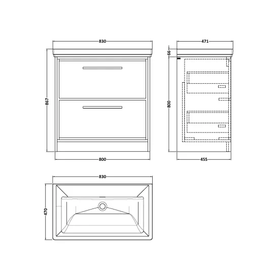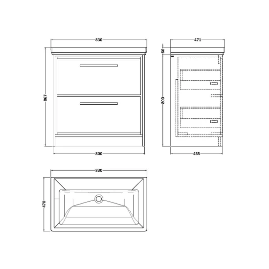 Hudson Reed Lille 800mm Floor Standing 2-Drawer Vanity with 1 Tap Hole Basin