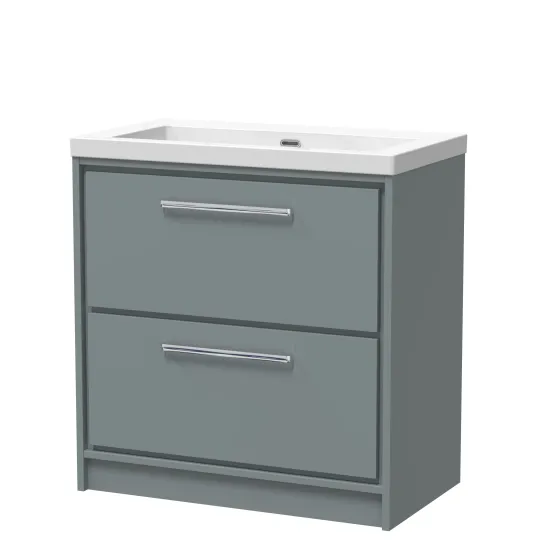 Hudson Reed Lille 800mm Floor Standing 2-Drawer Vanity with Basin - 0 Tap Hole - Coastal Grey