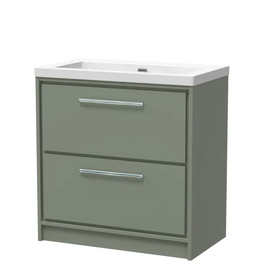 Hudson Reed Lille 800mm Floor Standing 2-Drawer Vanity with Basin - 0 Tap Hole - Fern Green